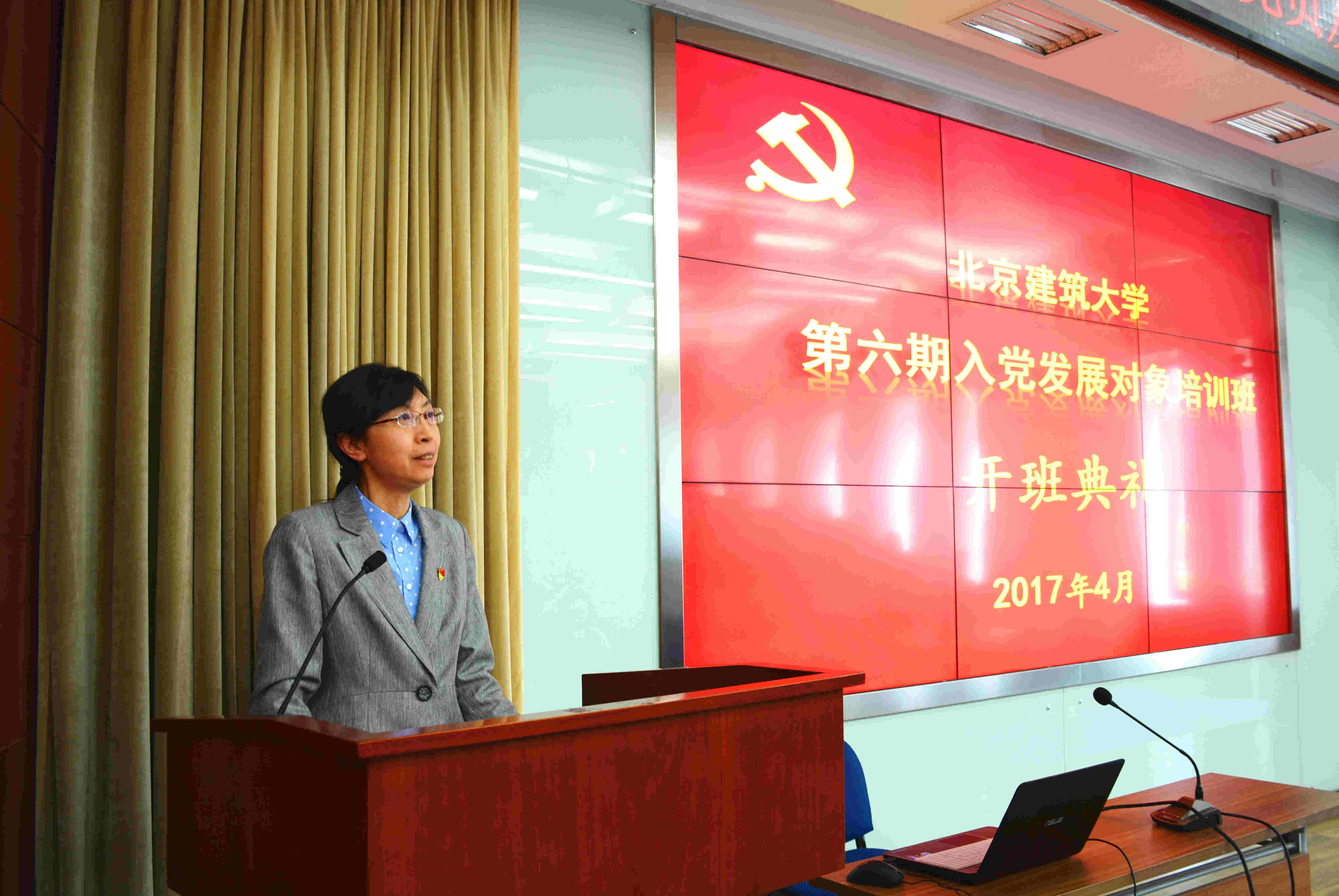 为做好新形势下的党员发展工作,严把发展党员关口,保证发展党员质量,4月11日下午,北京建筑大学第六期党员发展对象培训班暨首场报告在土木学院报告厅举行。bet5365me书记、党校常务副校长兼组织部副部长郝莹老师、党校办公室主任郑环环、各学院党委副书记和相关负责人参加开班仪式。仪式由党校宋颖惠老师主持。