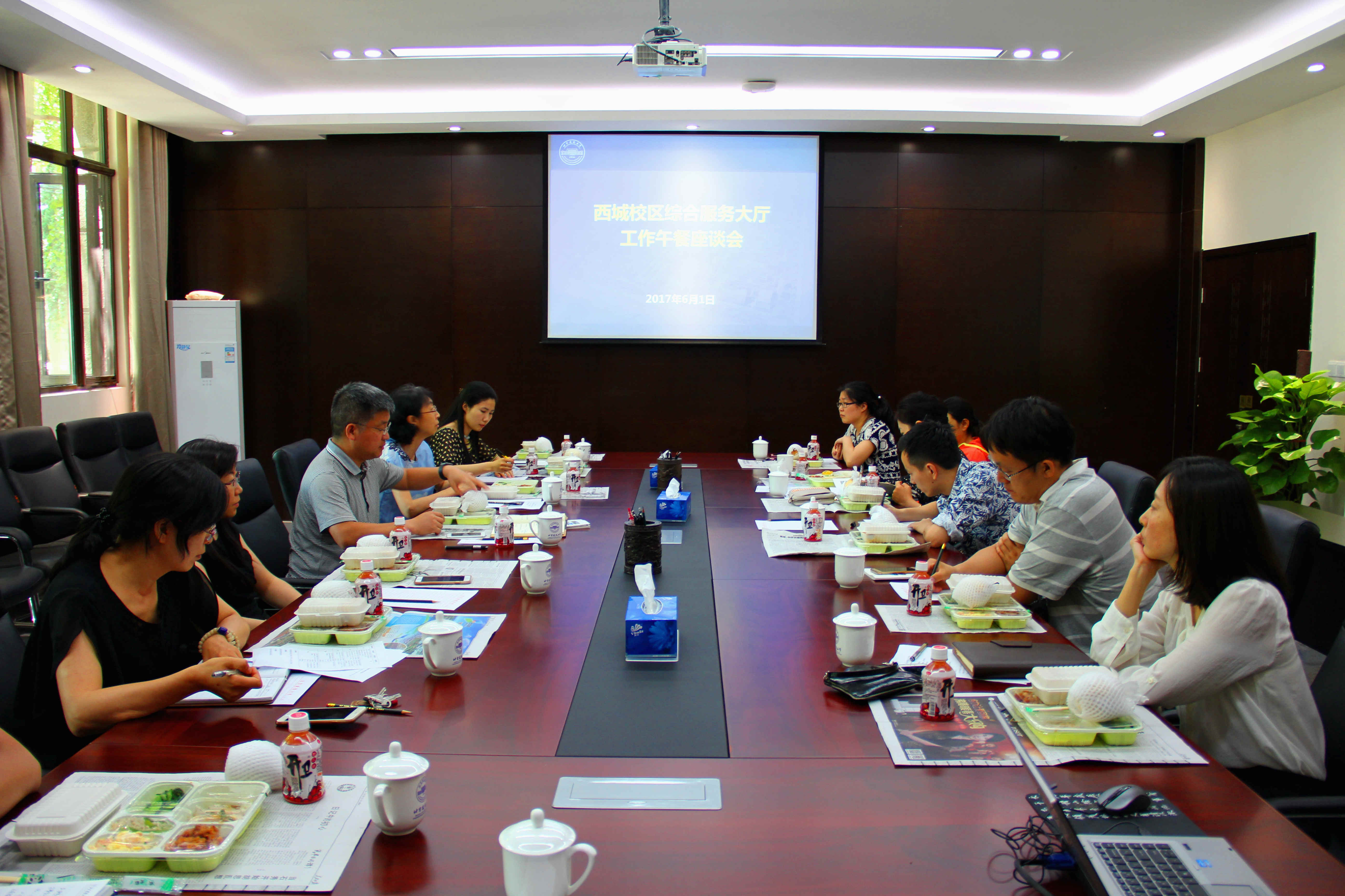 6月1日,机关党委在第七会议室召开西城校区综合服务大厅工作午餐座谈会。旨在了解服务大厅目前运行状况,听取各部门意见和建议,从而提升综合服务水平,为全校师生打造集中统一、高效便捷、规范透明、师生满意的综合服务平台。党政办公室主任白莽、资产与后勤管理处处长刘蔚,研究生院、保卫处、招就处、科技处、人事处、资后处、国交处、网信中心具体负责人参加了会议。会议由机关党委书记郝莹主持。