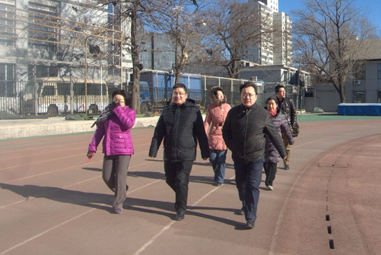 冬季长走活动在大操场举行。要求参加活动的会员从田径场起点出发,绕跑道快走4圈。长走活动原定12月25日举行,因当天严重雾霾天气,不适合户外活动,根据医务室的建议,分工会将会员的身体健康放在第一位,将活动推迟到次日举行,得到了广大会员的理解和支持。