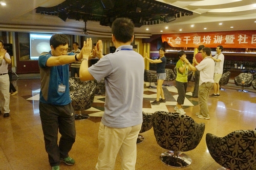 会后,与会人员进行了心理素质拓展训练和“Color Team Walk”团队健身活动。