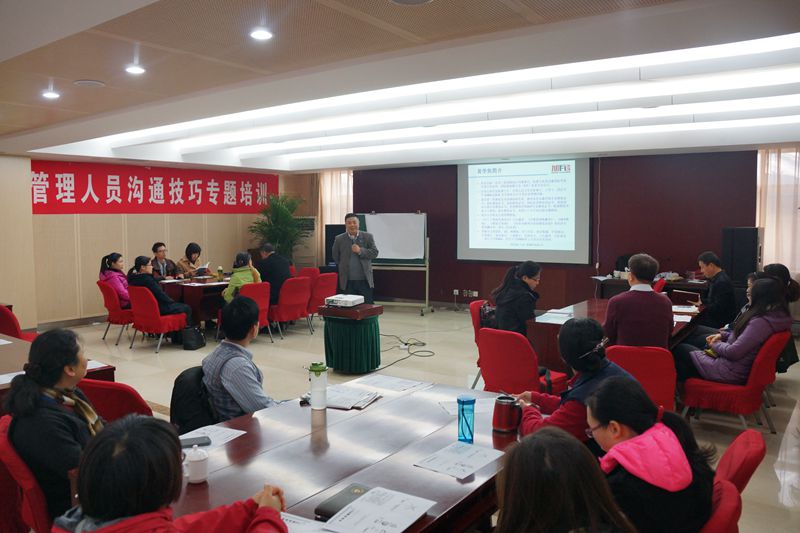 11月14日-15日,校工会、教务处、机关党委联合组织管理人员沟通技巧专题培训。培训针对高校管理人员的岗位特点和自身职业能力提升需求,邀请教练技术领域知名专家黄学焦,运用管理领域的“教练技术”,以“以达成共识为导向的沟通技术”为主题为大家作专题培训。本次培训由校工会主办、机关党委承办。来自机关职能部门和二级学院的30多名管理人员参加了培训。
