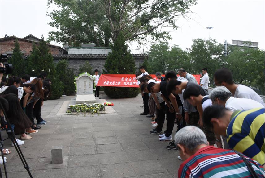 为了缅怀革命烈士,参观结束后,大家又乘车来到位于宛平城的赵登禹烈士墓进行祭拜活动。师生们列队依次每人献上鲜花,全体肃立在墓碑两侧,由学生代表卢青松致缅怀词,纪念这位在全国抗战爆发后最先为国捐躯的将军。赵登禹将军曾在长城喜峰口抗战中,以大刀、手榴弹和手枪等轻武器,夜袭日军炮兵阵地,歼敌300余人,一战成名。抗日歌曲《大大进行曲》就是以此次战斗为背景创作的。1937年7月28日在卢沟桥保卫战中壮烈牺牲,年仅39岁。
